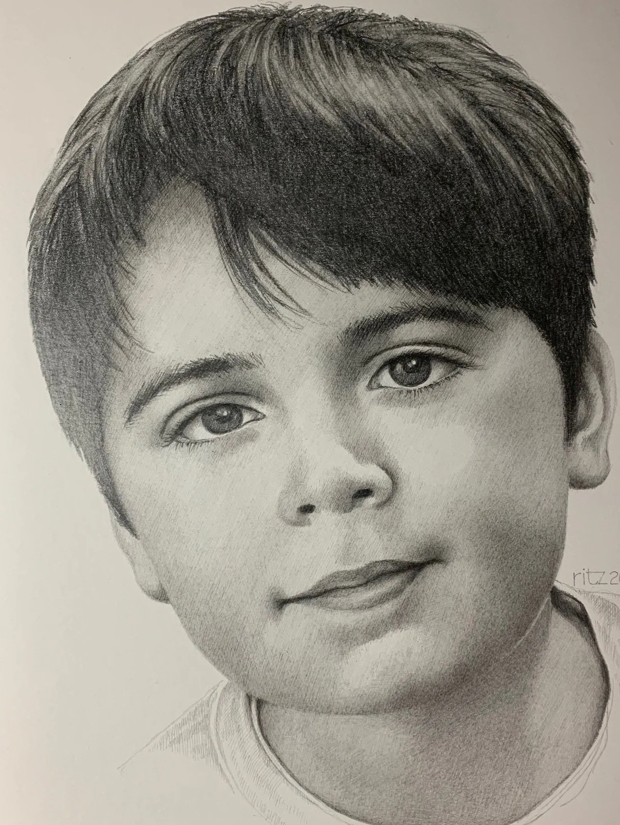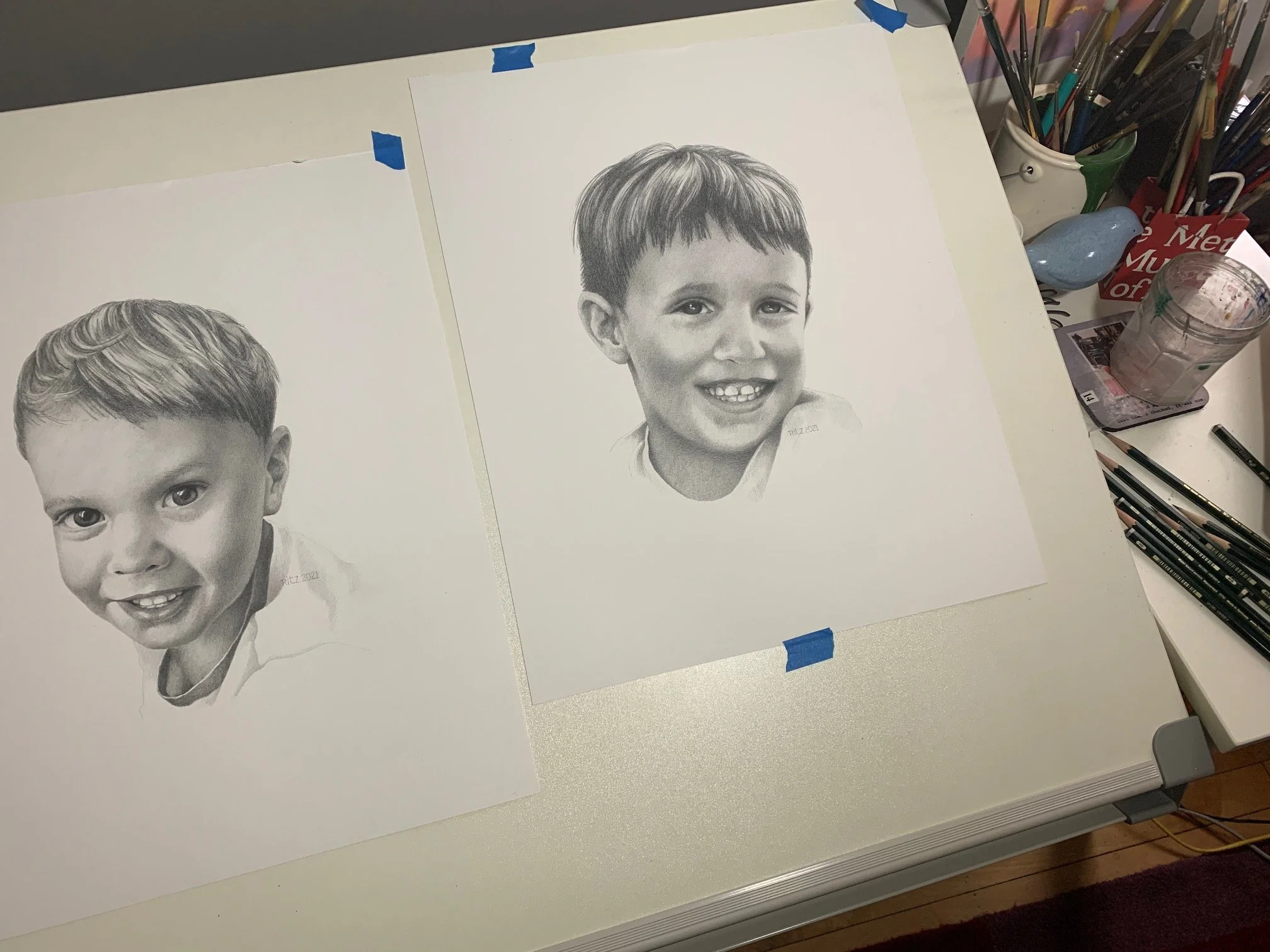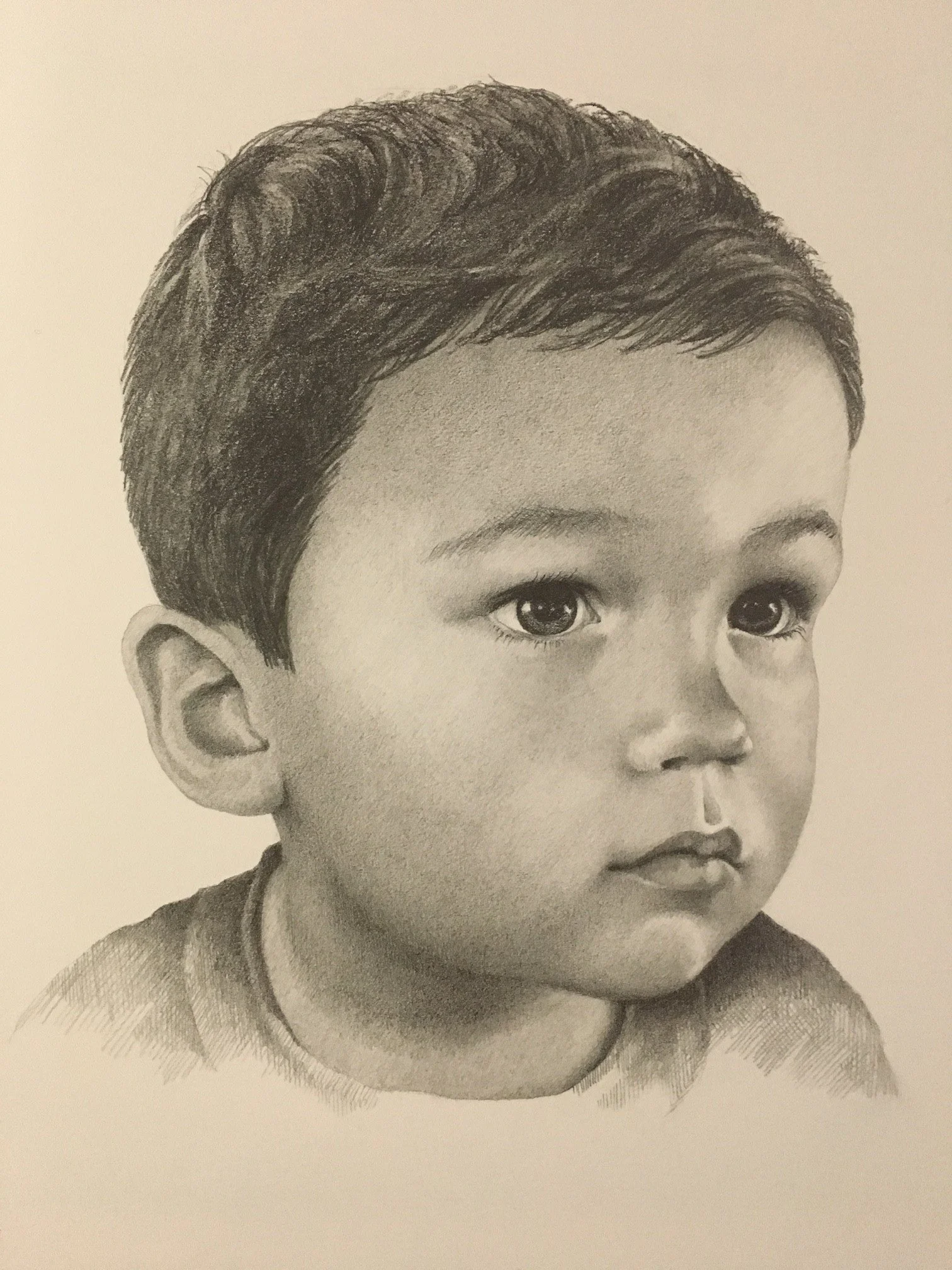 Often, I am working from a series of favorite photos - perhaps you like the hair in one, but the smile in another. They don’t even have to be smiling (my Grands aren’t). Perhaps a “look” or age from a while ago captured your heart. I prefer to do one child per drawing as they are meticulously created as a keepsake to pass on - I feel family group photos are best captured by a photographer. One of my favorite customer comments is from a dad, some 20 years after, “Those portraits are what I would take if the house were on fire!” More recently, there have been videos - the 40-yr-old mentioned above cried, her mom cried, and me too, watching afterwards.